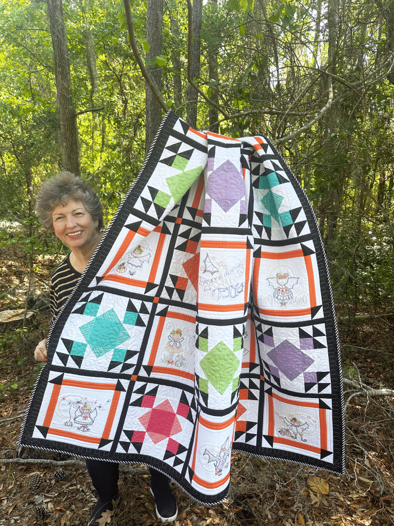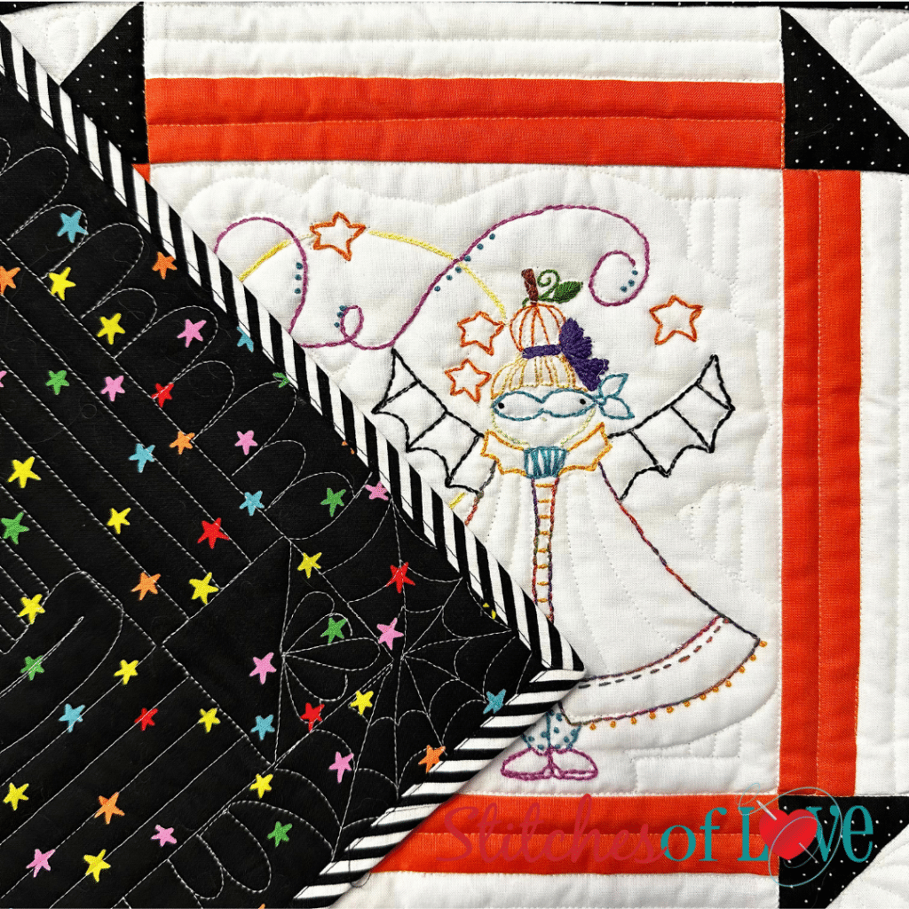 This quilt celebrates the magic and playful charm of the Bat Girls – where every stitch tells a spooky-sweet little story 🦇✨