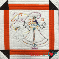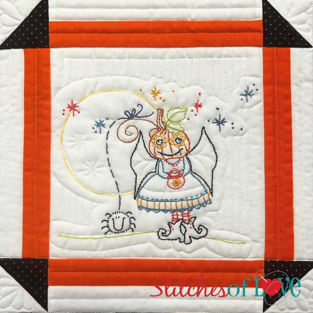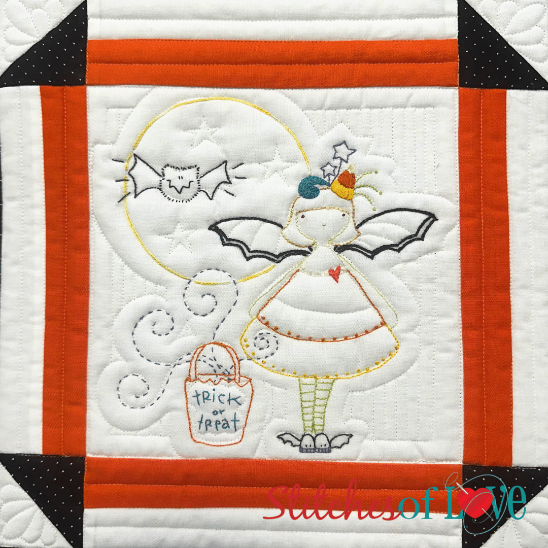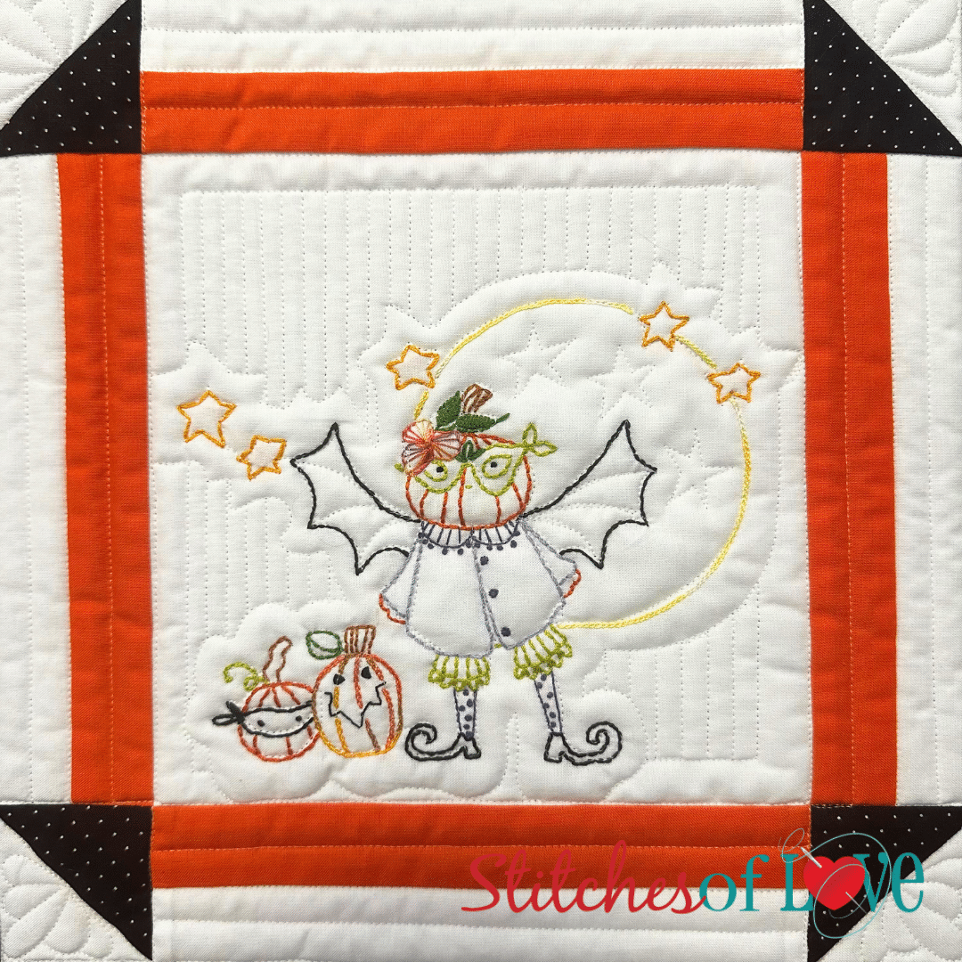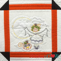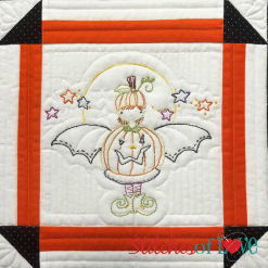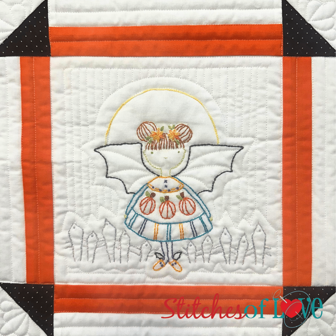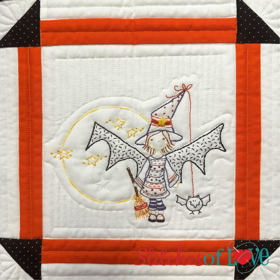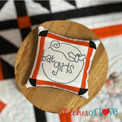 You’ll receive your “Bat Girls Pincushion” dissolvable embroidery design sticker, along with the assembly pattern featuring clear, easy-to-follow instructions and a full-color image of the pincushion with stitch and thread color suggestions. It’s a fun way to practice stitching on the dissolvable design sticker and create something adorable to keep in your sewing space all year as you work on your quilt! 🧵✨